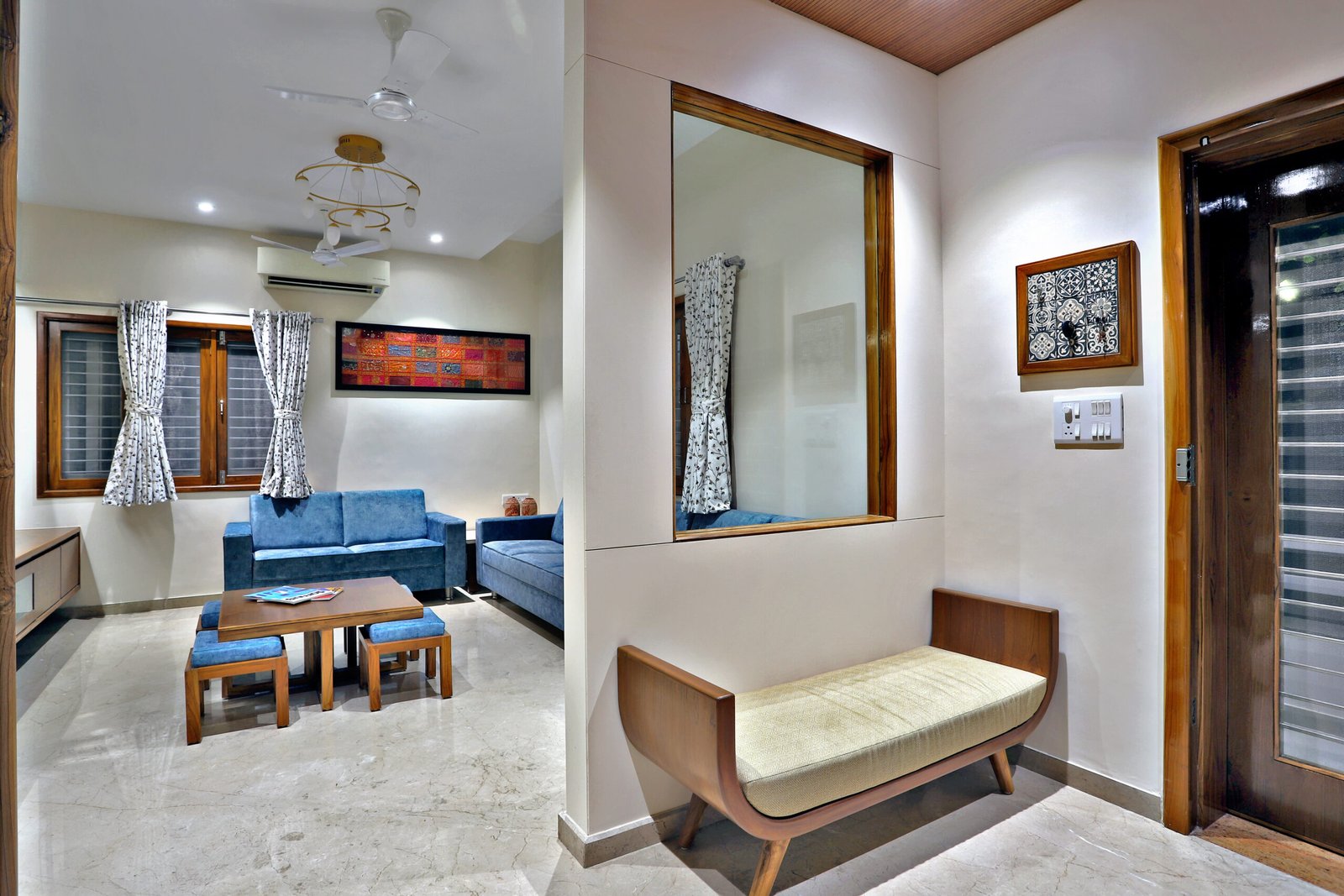 A collaboration with a maker and a thinker himself, this project circles around improved design for current use, room for functional spaces for time to come and keen inclination for clean lines in interiors. One of the best showcases of "Best out of Waste '' this Residential renovation is a testimony to details and replenishing and reuse of materials to redefine its purpose.