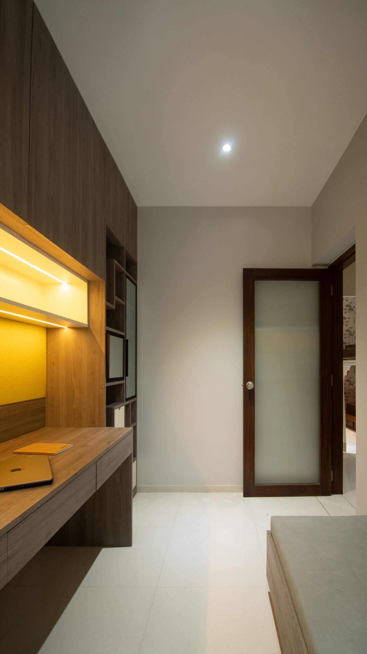 An adaptive reuse project for a New Delhi based client with business roots in Gujarat, the building tightly packs aspirations of a base office of two generations. A more than 3 decades old structure was put to use with a more volumetric approach of space planning using existing columns. The use of simpler materials attempt to exemplify the simpler ethos of the company. With additional landscape and warmer tones the office interiors remain more than just a habitable workspace.